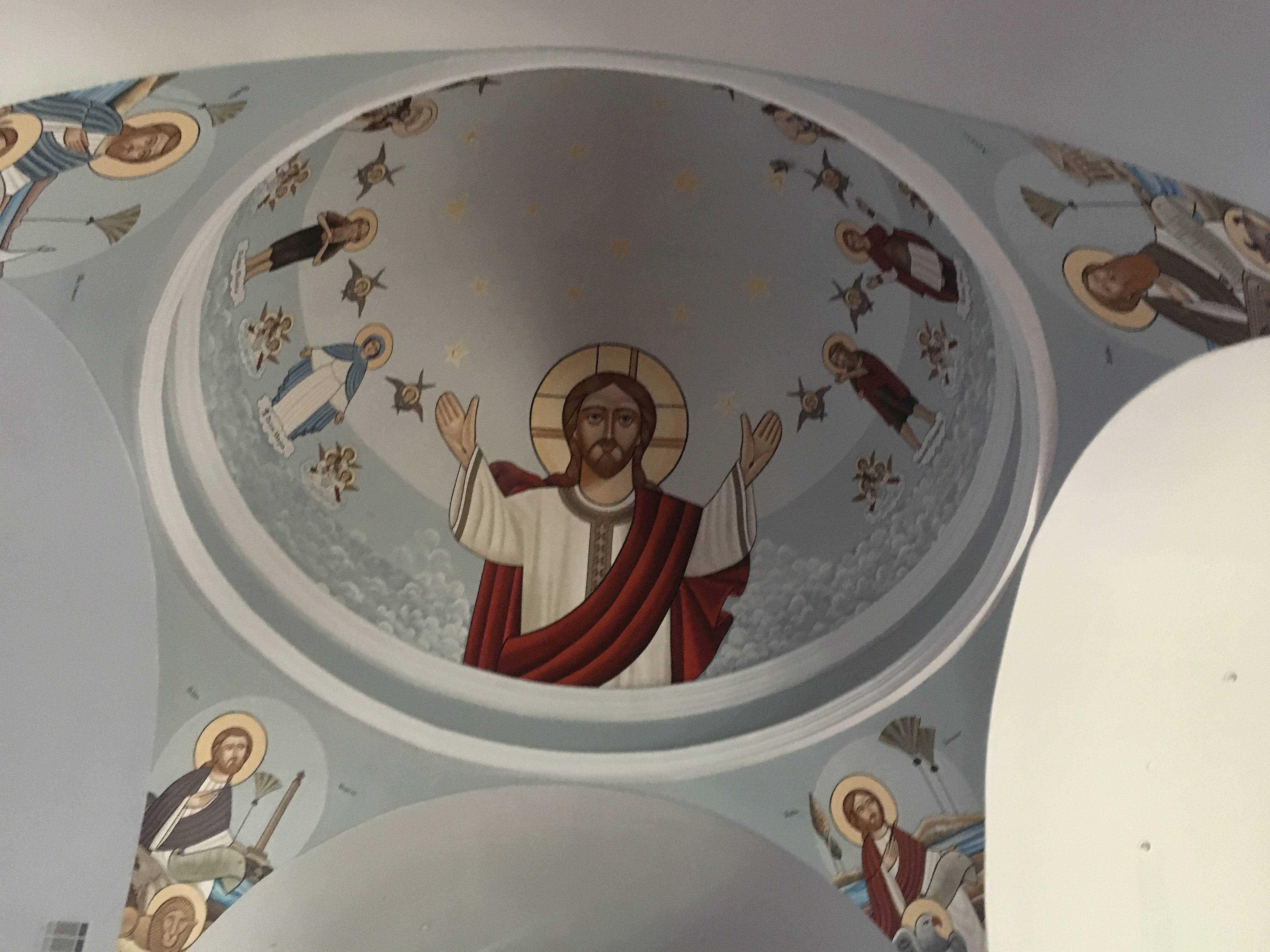 I stayed the entire day at St. Antony Coptic monastery. And it was a looooong day which began with 4 am “midnight worship,” followed by 5.30 am liturgy, followed by a fun conversation at breakfast with a group of Coptic parishioners and their priest from Phoenix, AZ and, then, most of the day in conversations with Deacon Paul, one of the most senior brothers residing at the monastery. It has been quite a while ago that I felt entirely at peace with myself, all people around me (although they talked mostly in Arabic), and the surrounding nature which was – again – surprise, because of the rather barren landscapes. As far as worship services, it was both very familiar and, yet, a lot of small differences. Taking off shoes and leaving them before entrance to church, clergy changing their black robes into white clothes while celebrating liturgy, the “handshake of peace” similar to Catholics, the “naive” style of iconography, the images and stories of ancient saints mostly unfamiliar to me. But I felt fully included and welcomed (being the only non-Coptic person there)