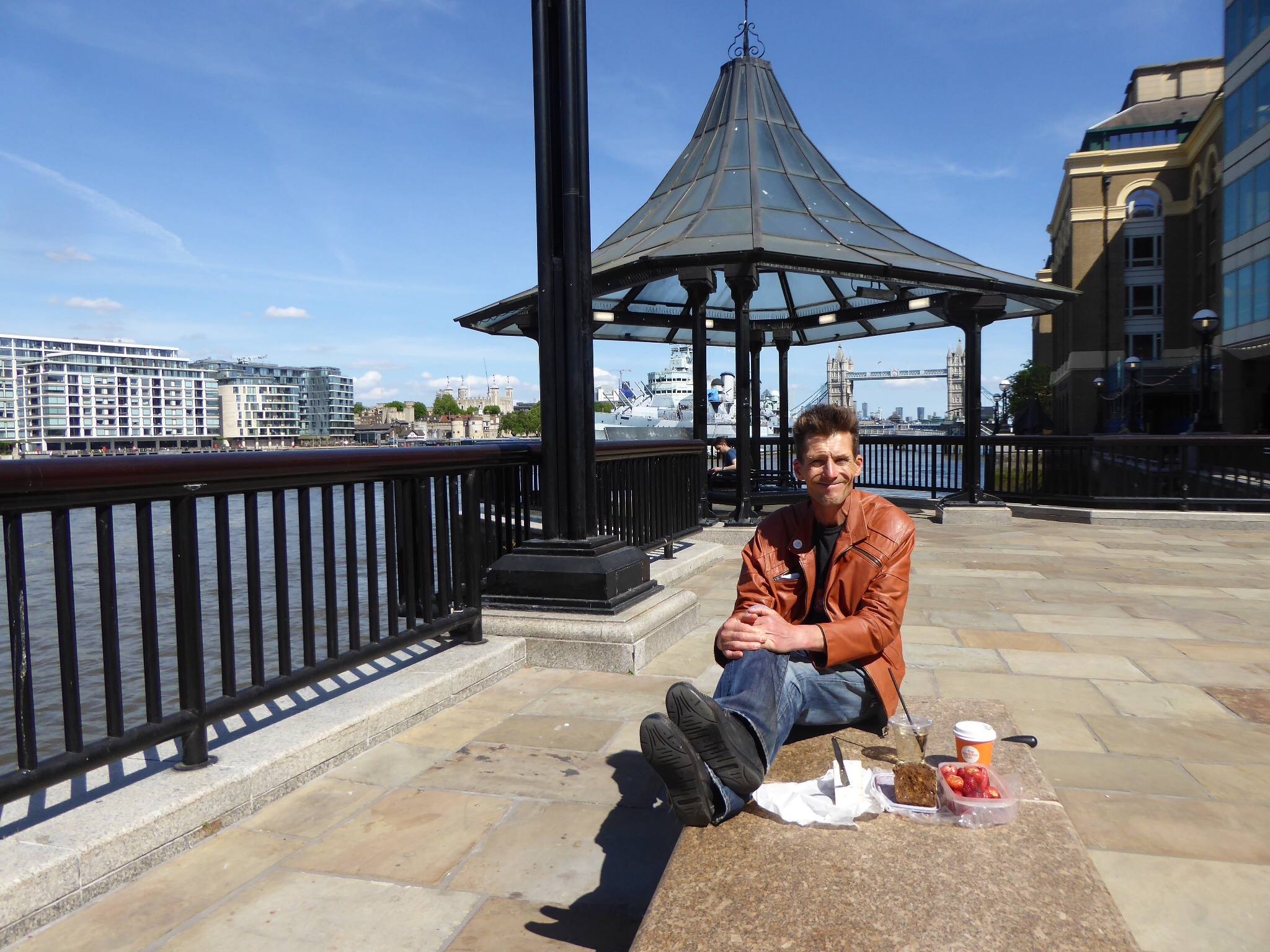 The ultimate choice for a picnic was a bench on the bank of Thames river.