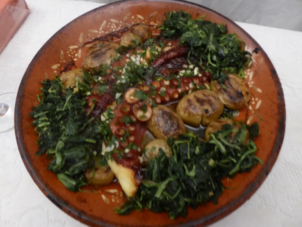 And then: back to Ponte de Lima. What for birthday dinner? My choice is simple. I love “pulpo,” octopus, and there is plenty of it in this area of the country. Baked with greens and potatoes, it was delicious.