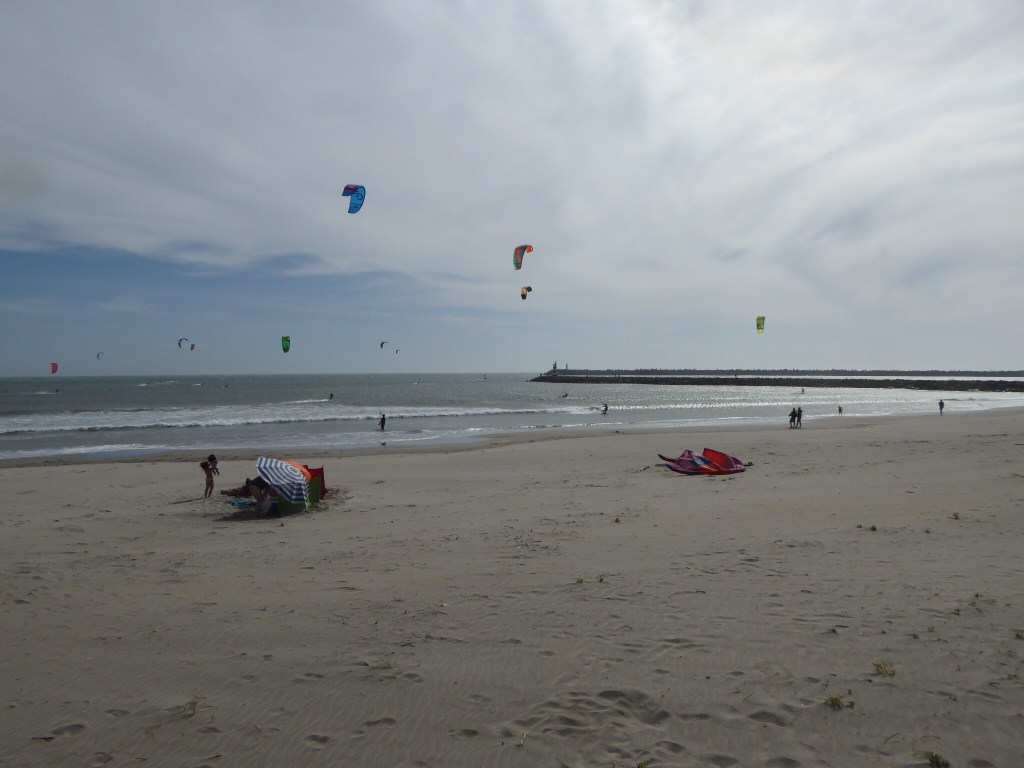 There was an additional bonus for being on the beach with this wind blowing: we found a bay which was occupied by dozens kite-surfers and spent there an hour simply watching them “jumping and flying.”