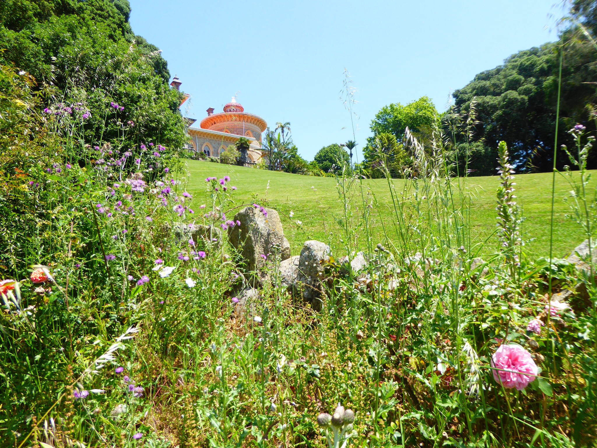 This is called Estatua do Guerreiri. It is built to be observed from a great distance, but I found the way to this monument and climbed it. The result was this (above) picture of Pena. At the bottom of this statue, I found amazing flowers growing literally from the stones.