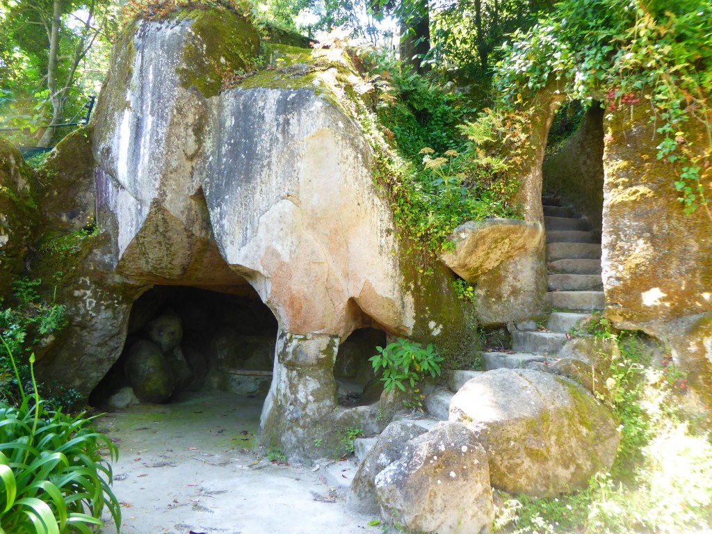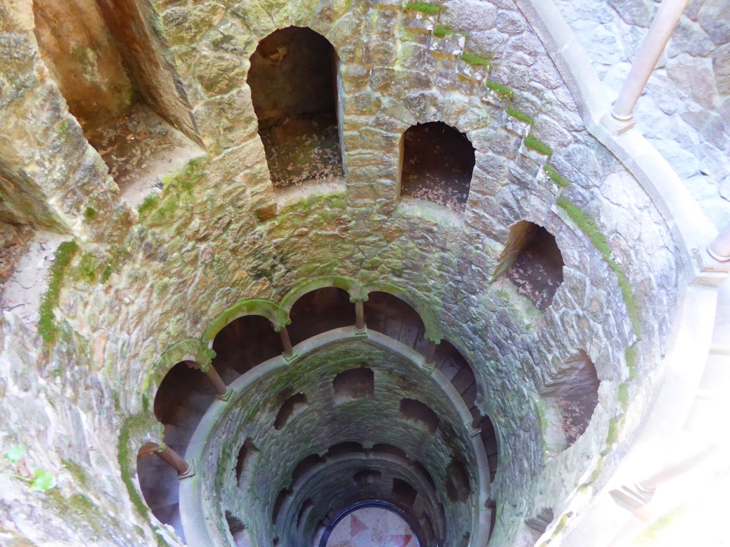 The day was full, but one thing made it really a DAY (all capital letters): the visit to Quinta da Regaleira. As I wrote in Day Eight, Sintra has abundance of castles, palaces, royal gardens, etc. Most folks choose as their ultimate destinations Pena Palace or Moorish Castle. These two are biggest, very sprawling and – in my view – somewhat eclectic complexes. Monserrate (see yesterday) and Quinta da Regaleira have much stronger “identities” and, at the same time, they are more “personable” and “intimate” to explore. If you ask, how I would describe Quinta da Regaleira in just a few words, I would say “fairy tale.” Built by the italian architect Luigi Manini at the end of 19th century, Quinta de Regaleira consist of of a Romantic palace and chapel, plus a luxurious park with lakes, labirints, grottoes, wells, benches, fountains, and much more. It is hard to describe, but the complex is sort of built on several levels which are interconnected by walking paths, stairs and even (yes!) tunnels. Better take a look here.