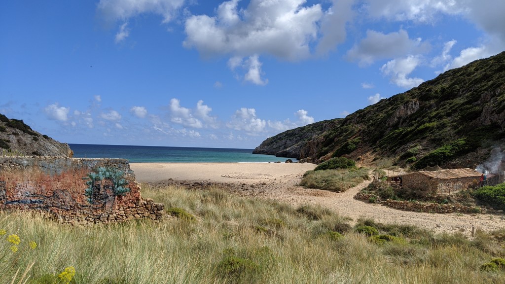 Another favorite was Praia das Furnas. A little bit tricky to get there (you still can find it and get directions on Google maps), but the reward is the full absence of conventional tourists. Instead, this beach attracts nudists and – yes! – it is “home” to a small colony of hippies and artists who live there.