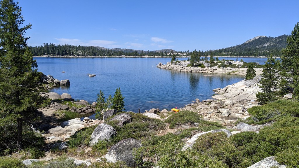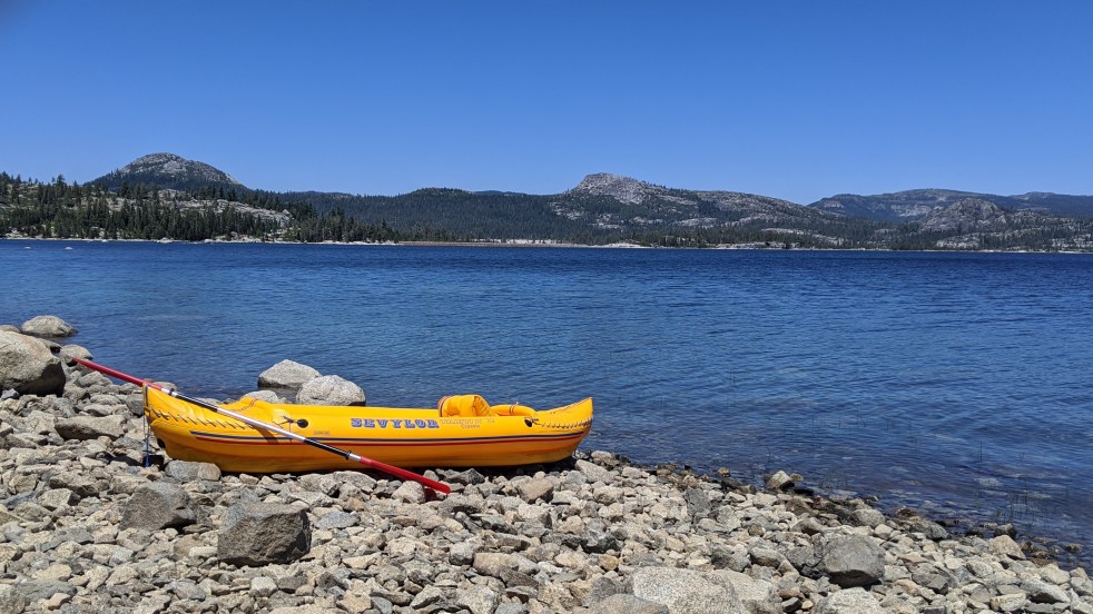 I should mention that the lake’s elevation is 5600 feet: so, it can get fairly chilly in the night, but the days are hot and – because the lake is shallow – water is perfect for swimming. The best thing to do here is to bring a kayak (I have inflatable) and simply explore