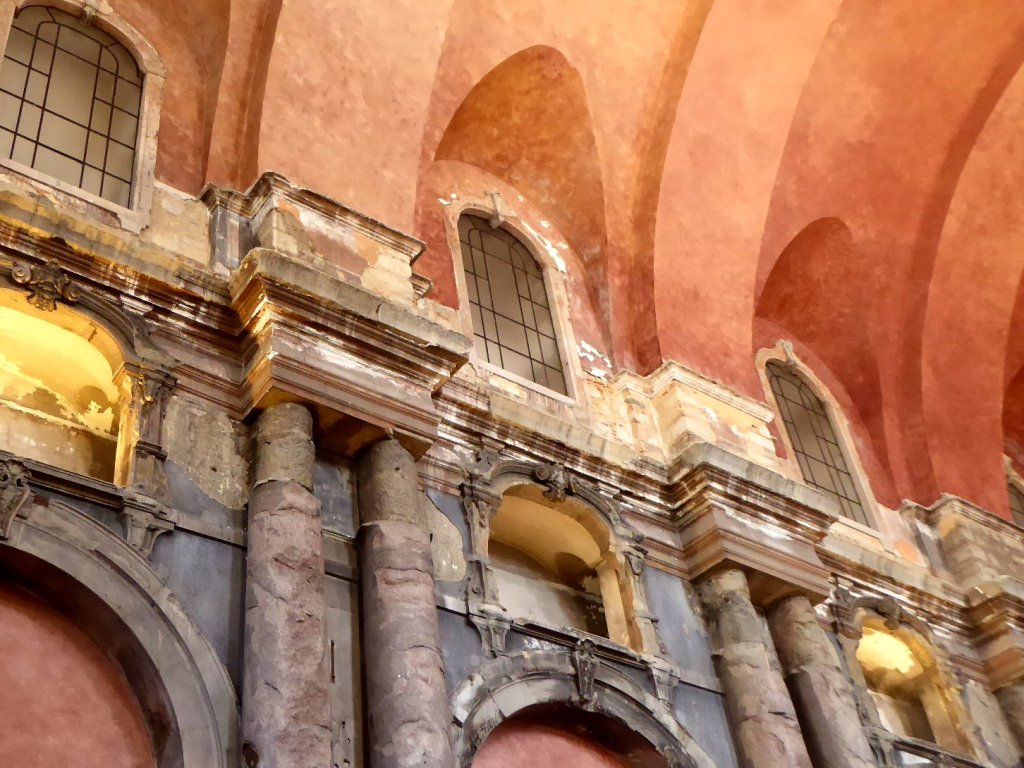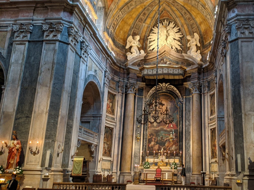 We visited Santo Domingo Church which has a somewhat grim history. In 1506, about 2000 Jews were executed in front of this church by inquisition. The event has become known as Lisbon massacre. In 1959, the fire broke and the church was devastated. Miraculously, however, the ceilings not only survived but became much brighter colored in pinkish tones. Some saw this as a sign to remember medieval mass execution of Jews. A decision was made to only partially restore the church and leave many columns covered with ashes and soot.