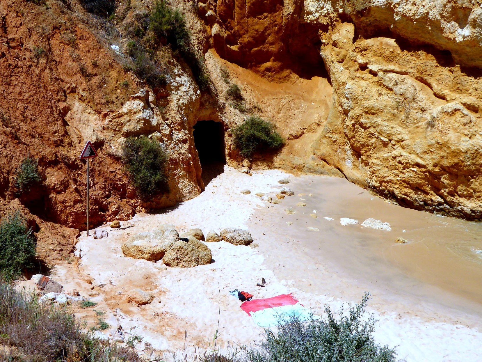 Olga was desperate to go to the seaside and have a swim. Yes, it was mid-November, but the daily temperatures were still above 70F/20C. Obviously, in Portugal, you have a choice of west and south coasts. Both of them face Atlantic ocean, but they are very different. West coast is more dramatic in appearance with high cliffs, big waves, significant differences between high and low tides. The south coast, in the province of Algarve, is more gentle with many sandy beaches and protected calm coves. If you are surfer, then west coast is your choice, but for lazy sunbathing and swimming the South of Portugal is better. It takes less than 3 hours to drive straight from Lisbon to Lagos which is kind of “holiday capital” of Algarve, but we decided to also explore on our the a few beaches along the west coast. Our favorite was Praia do Vale dos Homens – a very wide sandy beach baked by dramatic cliffs.