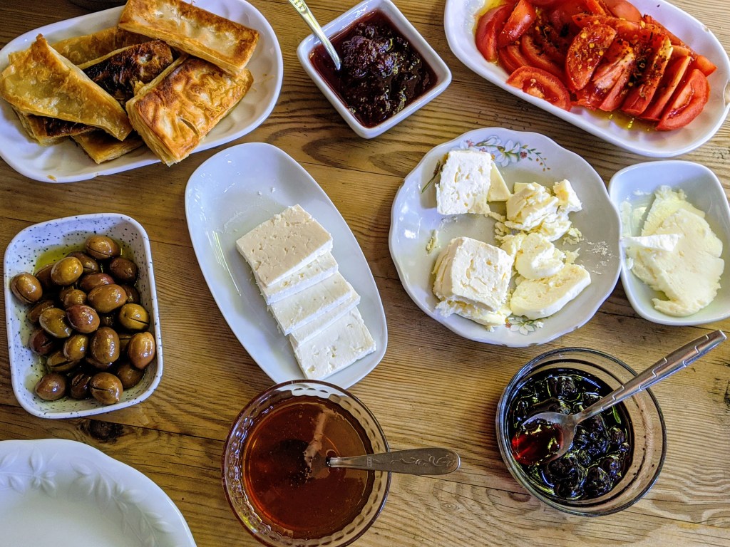 Our intention was to find some nice local restaurant, but the food served at the Cesme Termal Otel was soo good that we ended up having all out meals at the hotel. Look, for instance at this “dream breakfast” which was included into the price of accommodations. I “played” half an hour each morning combining various cheeses with different jams and sauces…
