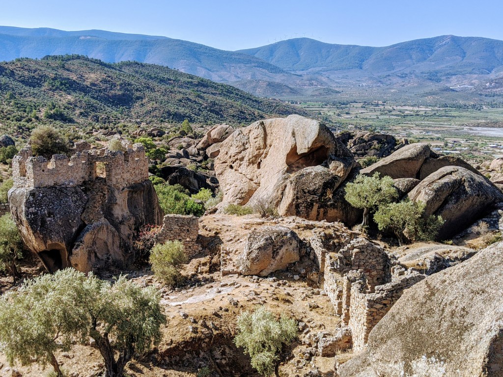 After two nights in Cesme, we drove to a sacred and mysterious place called Gerga. It is a sanctuary or cult-site hidden in the Latmos Mountains of Caria (also known as Bespark Mountains). This stunning area with its out-of-this-world boulder rock formations is reason enough to plan a hike here. Very little is actually known of Gerga, Various sources of information define Gerga as a ‘Carian-Hellenistic’ village, a necropolis, or a sanctuary, and it may be a bit of all. Walking around, you will find the name of the place over 20 times, carved in the rocks and buildings. The inscriptions are mostly in Greek and Latin, and appear as Gerga, Gergas, and Gergakome. The name is a topic of discussions among researchers. In ‘Two Carian Notes’, Richard P. Harper claims that the name Gerga means “The Sanctuary of Kar”, connecting it to the nearby site of Alabanda and the myth of Alabandos, son of Kar. He also believes that this place has evolved over different centuries, explaining why there are several hypotheses on the name and the nature of this place.