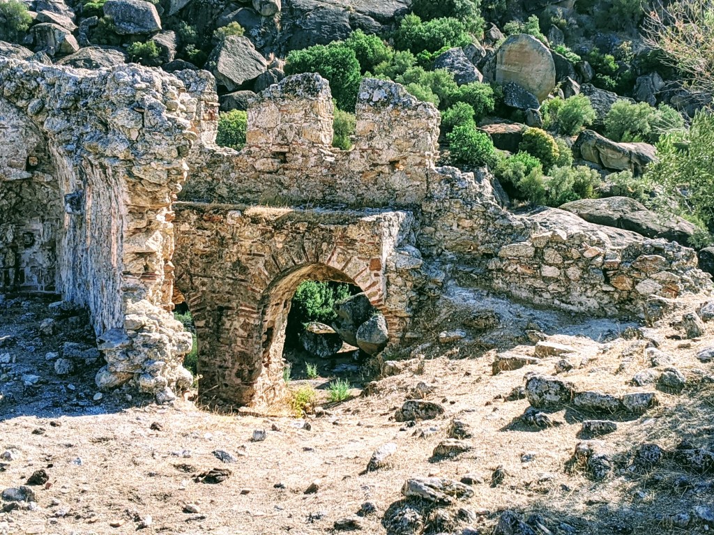 After leaving Kapikiri, we drove just a few kilometers to Golyaka village – the place where the hiking trail to Yediler Monastery (also known as “Seven Monastery” and “Kellibaron Monastery”) begins. In short, if you like stunning (and easy) hikes to magical places, then put Yediler Monastery on your Turkey bucket list! Yediler Monastery is a Byzantine-era monastery located in the sacred Latmos Mountains. It is believed that the monastery complex was established in the late 10th century, with more structures added later and fully completed in the 13th century. The monastery complex was enclosed by walls, some of which are still standing today. You will find remains of two chapels, a cave with an apse (arguably also used as a chapel in the southeastern side of the big courtyard), a well preserved and well protected upper castle, vaulted cell rooms and much more. For me, however, most important was not archeological or architectural value of this monastic complex, but the entire setting with the boulder-dotted Latmos Mountains as a background and Lake Bafa and its islands as a backdrop.