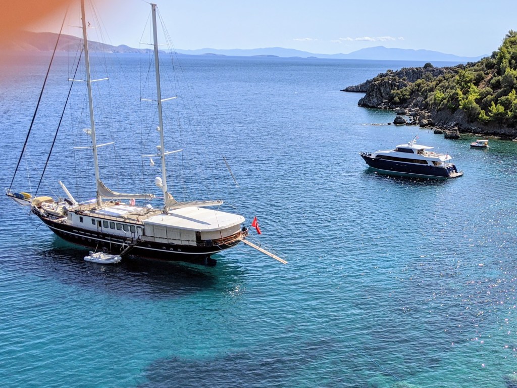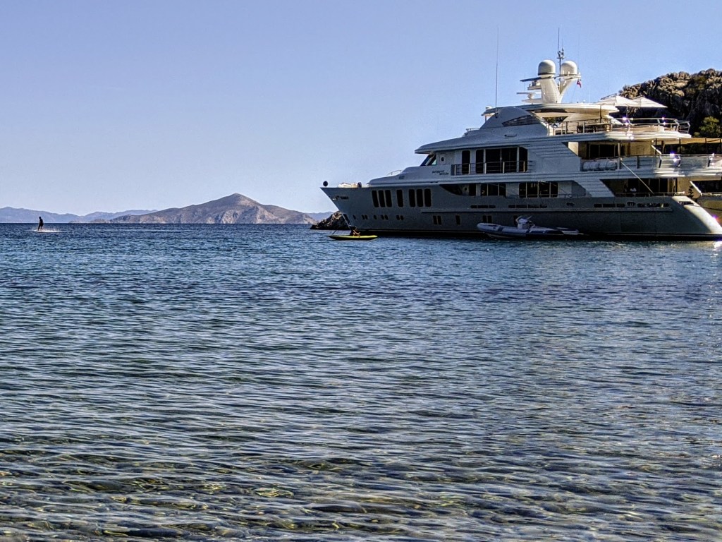 When we arrived, the whole place was “for us only,” but then a very serious visitor arrived: a private mega-yacht.