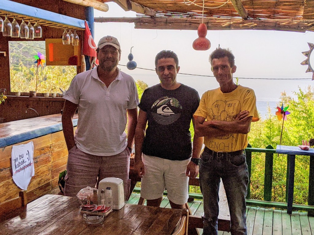 I found Kabak Valley Camp via AirBnB and – despite apparent simplicity of accommodations – was instantly attracted by many reviews praising the welcoming feel of this place and genuine hospitality of the owner. Turhan (the owner) is one of the old-timers in Kabak. He opened his camp 15 years ago and at that time there were only three places to stay in Kabak. I never regretted this choice: the food was delicious, people working at camp took great care of the guests, and Turhan himself turned out to be a delightful and very interesting person to talk to. Turhan is in the middle on the picture below.