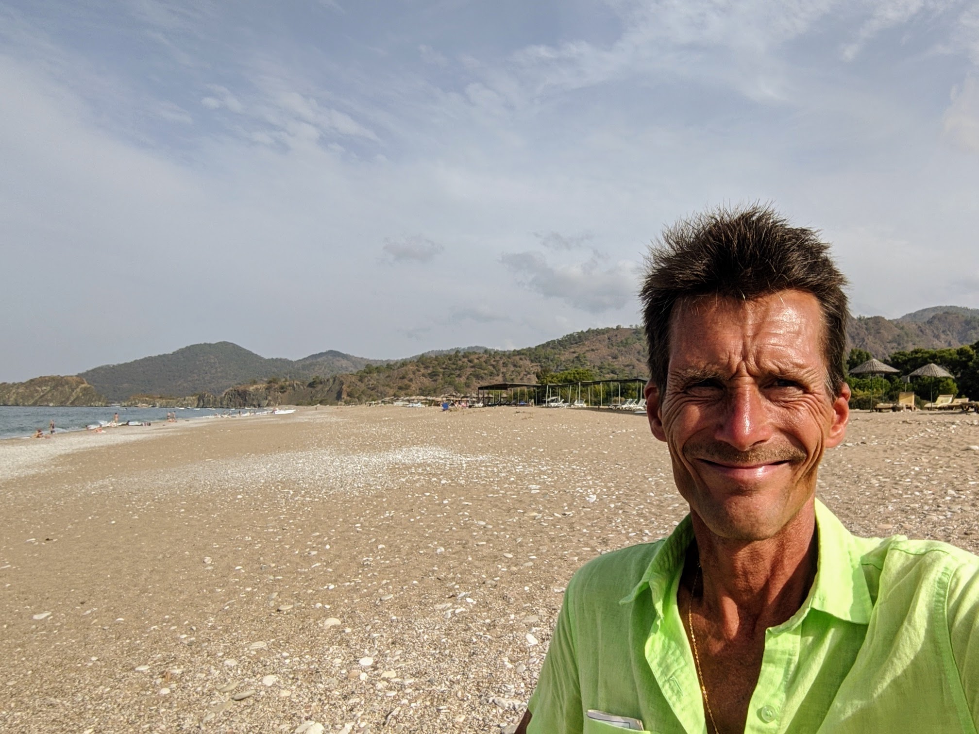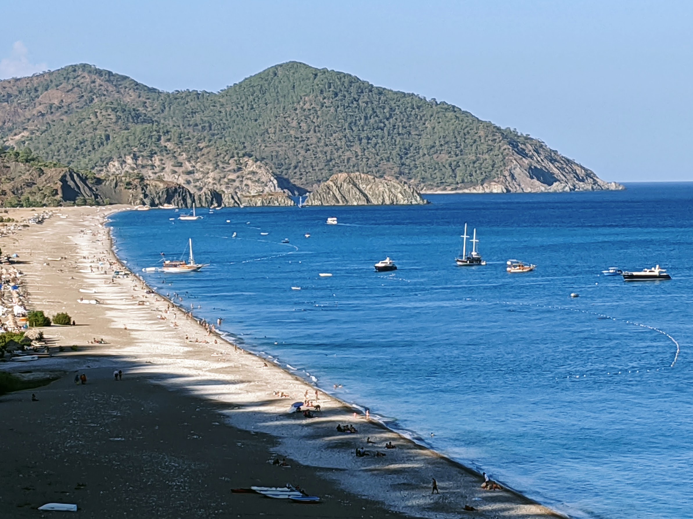 The beach at our hotel was Ok, but there was a much better choice nearby: the Delikli Koy Beach. The combination of white sand, limestone formations and deep blue sea made this beach our instant favorite. Besides, if you go there, there is a good chance to meet some interesting people, because this beach attracts hippy-like travelers with their vans and campers.