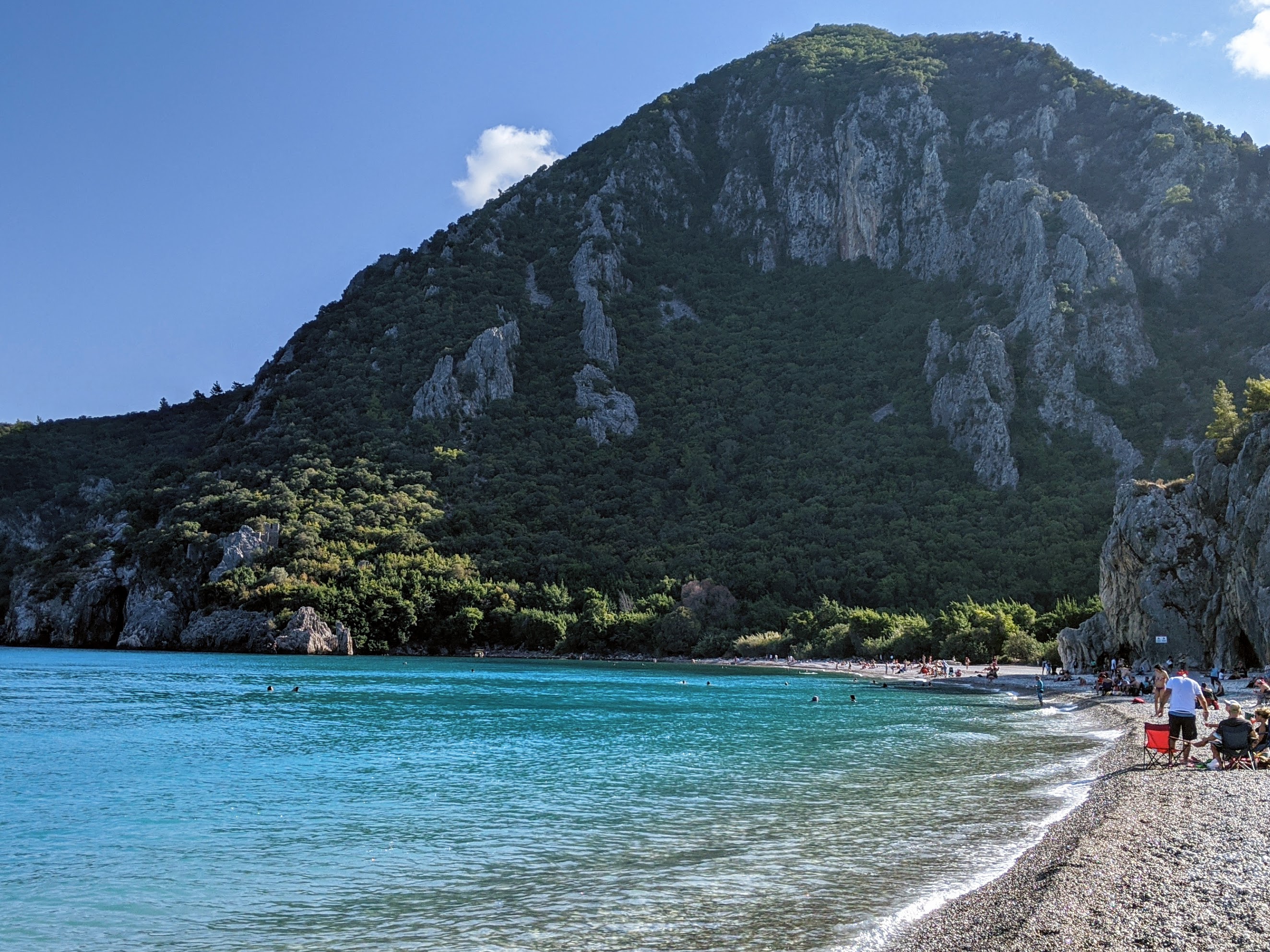 Back on the road after Kabak, we headed further south along the coast. A couple of hours later we arrived at famous Kaputas Beach. Indeed, its sand is super fine and the waters are super transparent, but (similarly to Iztuzu beach) it was too crowded for me.