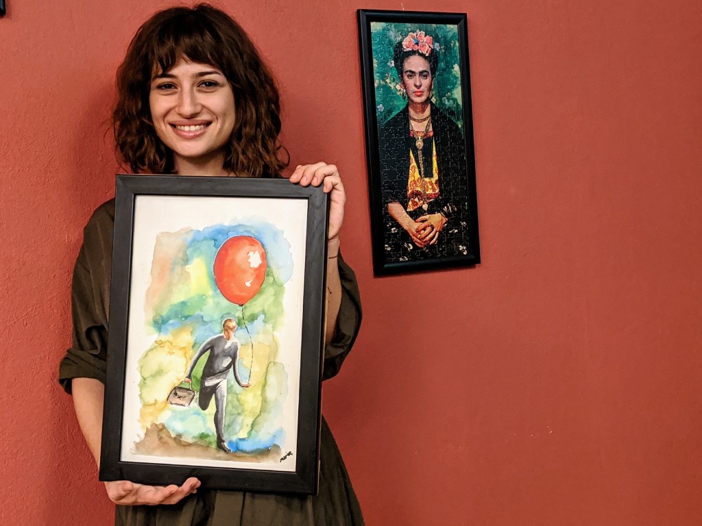 Believe it or not, but I brought a “piece of Cirali experiences” back home to California. And here is how it happened. I love massage and found in Cirali a good place run by young but very experienced massage therapist named Birkan Arslan. The walls in his house were decorated with many water colour paintings and I asked who the author is. Turned out that he has a girlfriend who is professional opera singer (leading soprano) in Antalya opera. However, as many genuinely talented persons, she is also good at drawing and painting. I asked to meet Merig Karatas (her name). She told me that she never sold any of her works, but simply gave them away as presents. I loved in particular one of her works inspired by old French movie “The Red Balloon” and…I became a first person who bought her painting.