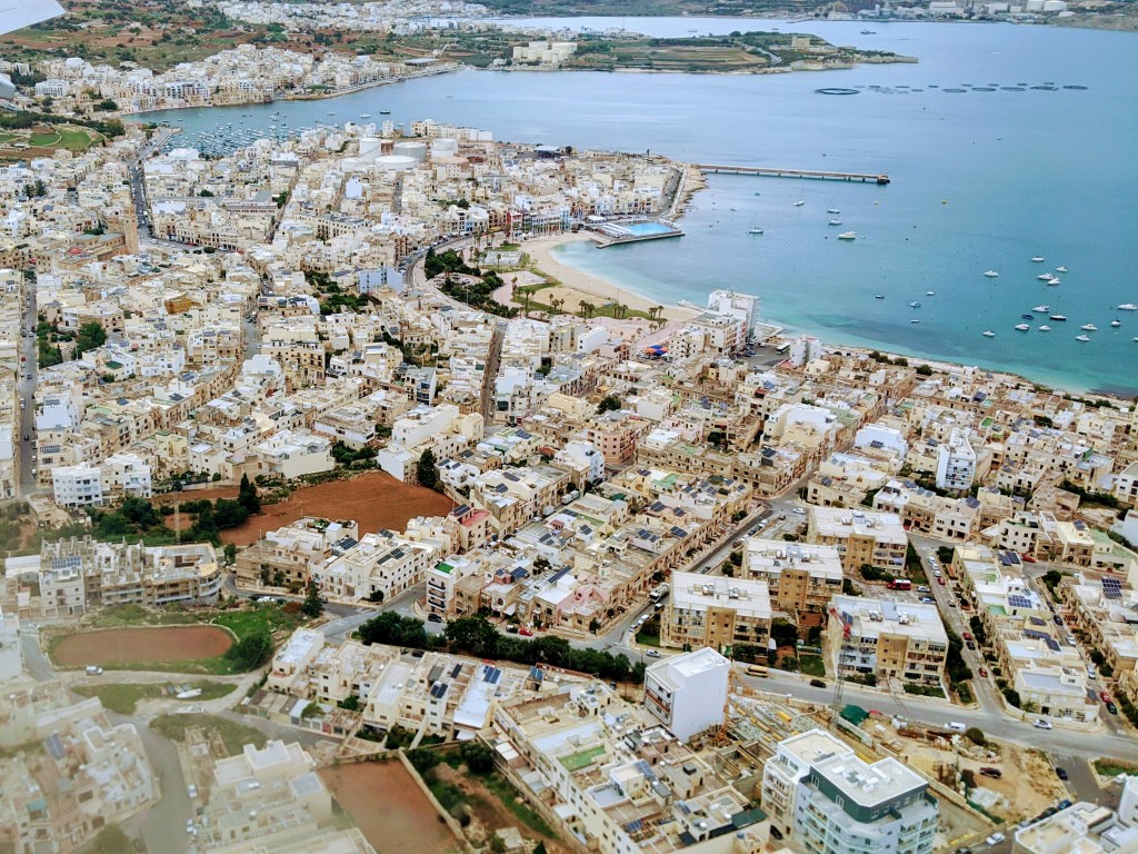 I have never been before to Malta and, probably, wouldn’t go there, if not for the reason I already wrote about: Malta was for me a “gate” into Europe. Americans can currently visit Malta after two weeks spent in Turkey, and then – because Malta is part of borderless European Shengen zone – they can proceed to other European countries (which otherwise “closed” their doors for the holders of American passport because of COVID). Technically, I could change planes the same day and fly out of Malta right away, but I decided to stay for couple of days and explore. This was 100% right decision. In fact, I could use more time and see more things on this tiny island nation in Mediterranean sea which is situated about 80 km / 50 miles south of Italy. Malta consists of three inhabited islands (Malta, Gozo, Comino) with about half million total population and the territory of 316 sq km / 122 sq mi. The first appearance of Malta’s capital, Valetta, from the air was quite pleasant.