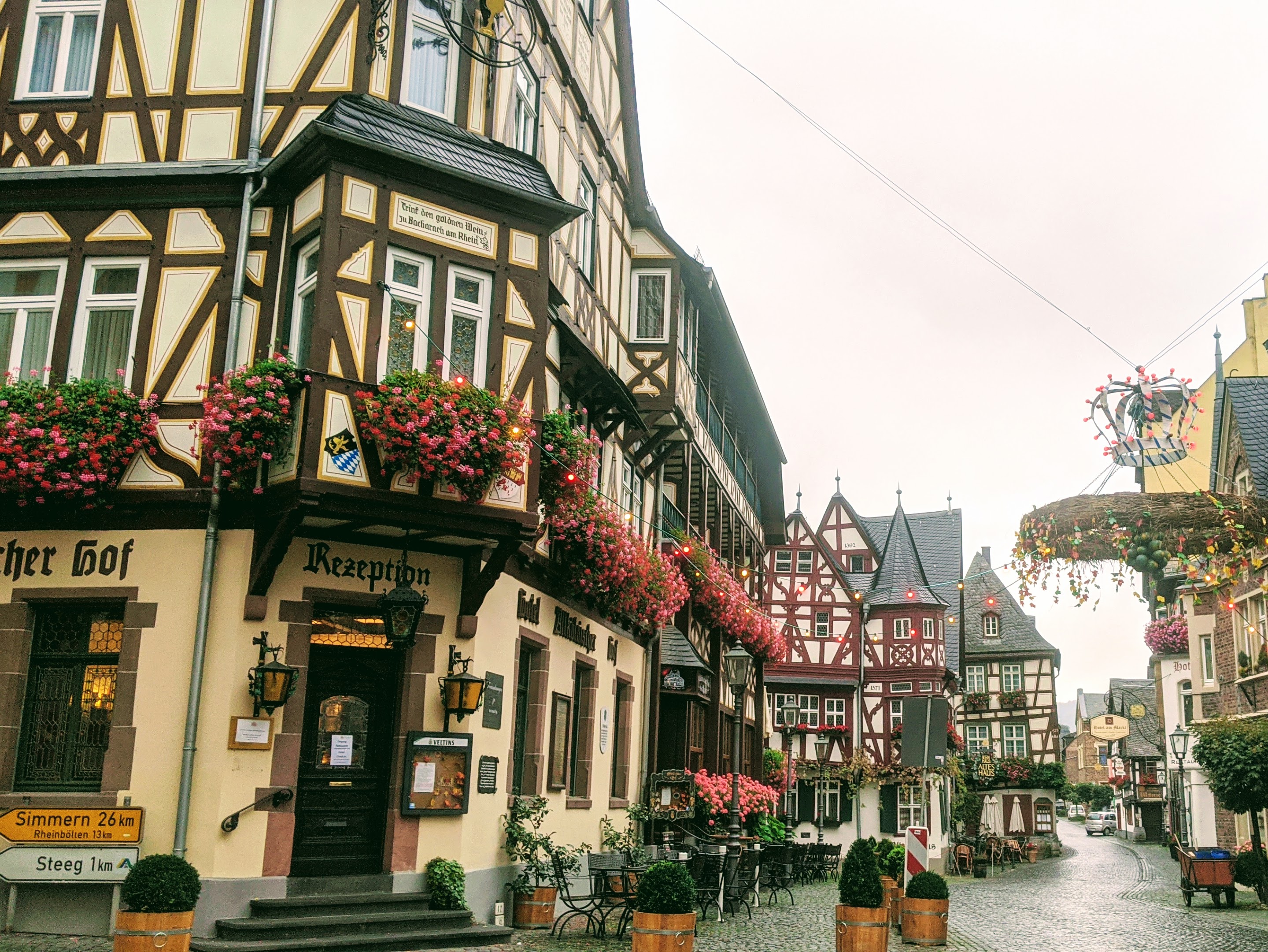 By the way, if you are interested in various “alternative healing practices,” take a look at Olga’s work: www.light-land.com She works both with German and international clients/patients and uses a variety of methods to help people to deal with their health issues. Anyway, I met Olga and her cheerful daughter Yasmin and we drove 6 hours to one of my very favorite historical German towns, Bacharach am Rhine. As the name suggests, it is located on the bank of the Rhine river (frequently referred to by Germans as “Father Rhine”). Bacharach is one of the best preserved medieval towns in Germany. It has also dramatically beautiful natural setting: in the Rhine Gorge (Upper Middle Rhine Valley) and near mysterious Lorelei Rock. Bacharach is surrounded by vineyards and it is one of the best places in Germany to enjoy and buy high quality German Riesling wines (Riesling is my favorite white wine varietal).