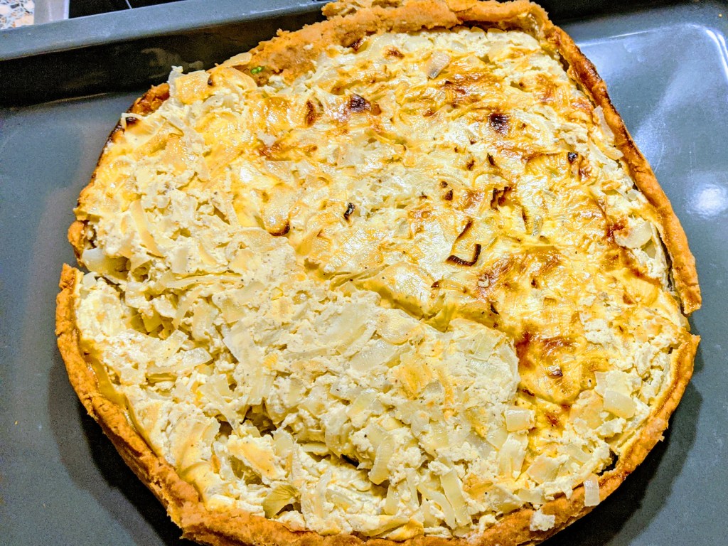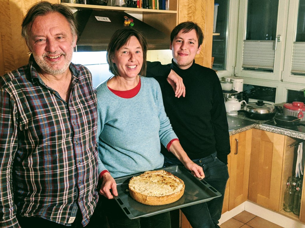 Although Michael and Katja are very different from Juergen and Monica in terms of their occupation (MIchael is medical worker and Katja is tour guide), the two families have yet many similarities. And similarly to Wilkers, Michael and Katja love good food and enjoy fairly sophisticated cooking. On the my last evening with them, Katja made my other favorite German dish: Zwiebelkuchen (Onion Pie) which is somewhat similar to Quiche but with onions being major filling component. Traditionally, Zwiebelkuchen was eaten in the fall and with young (sometimes still fermenting) white wine. Hence, while visiting Katja, Michael and their son Oliver in the late October, Zwiebelkuchen was very appropriate choice.