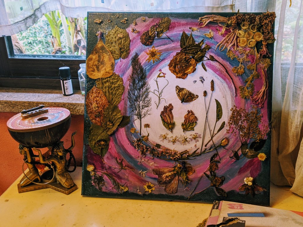 And she uses rainy and dark winter days to create her artwork based again on various natural components (dry plants, insects, etc.)..