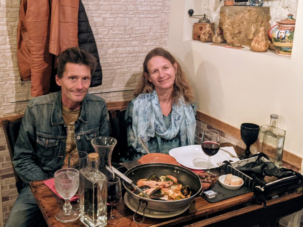 Despite being a small provincial town, Alandroal has a decent selection of restaurants. Alberto suggested to go to a place called Adega dos Ramalhos. Both service and food were outstanding. The main course – tomato and bacalao (cod) soup – was not only tasty, but fun to eat: you need to mix the components yourself (vegetable soup, cooked cod and scrambled eggs) as the meal progresses.