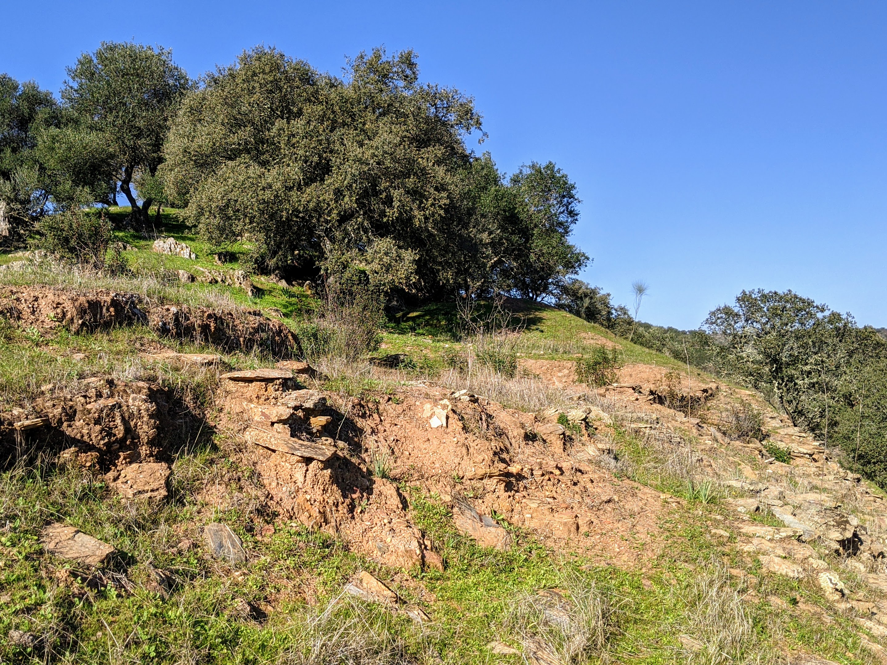The second place is Rocha da Mina: a pre-Roman sanctuary located in a very distinct natural setting. Similarly to Castelo Velho, you will need to hike about 30-40 min. From Alandroal, take EN 373 road towards Redondo. In about 9 km and on the left side of the road, there will be a small wooden sign for Rocha de Mina. Turn there, drive about 1 km along dirt track and park at the old farm. The old man running this farm is very friendly and if you ask something (either in Portuguese or via Google Translate) he will do his best to satisfy your curiosity.