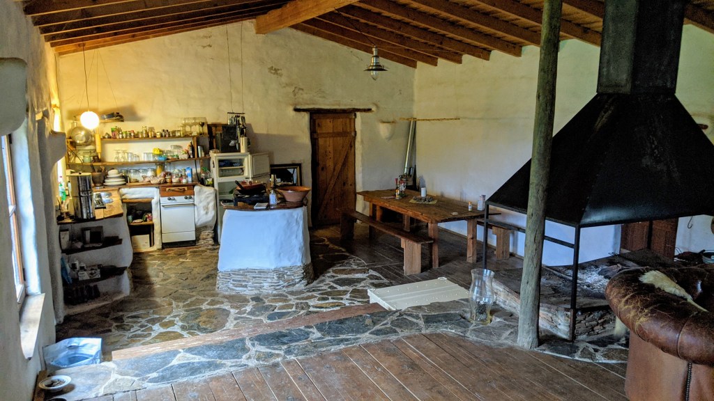 Problem was that in addition to being late because of adventures in El Torcal, I lost several times Internet connection and, therefore, connection to Google maps. The rain, darkness and bad country roads did not help either. Yet, Patrick was waiting patiently and – after we met – I followed his small jeep into what felt in the night like a tropical rainforest. A few kilometers on the dirt tracks and we arrived to his house. Patrick’s place is fully “self-sufficient:” solar batteries as the source of electricity, 80 meters deep well as the source of water and huge traditional stove in the middle of living room as the source of heating.