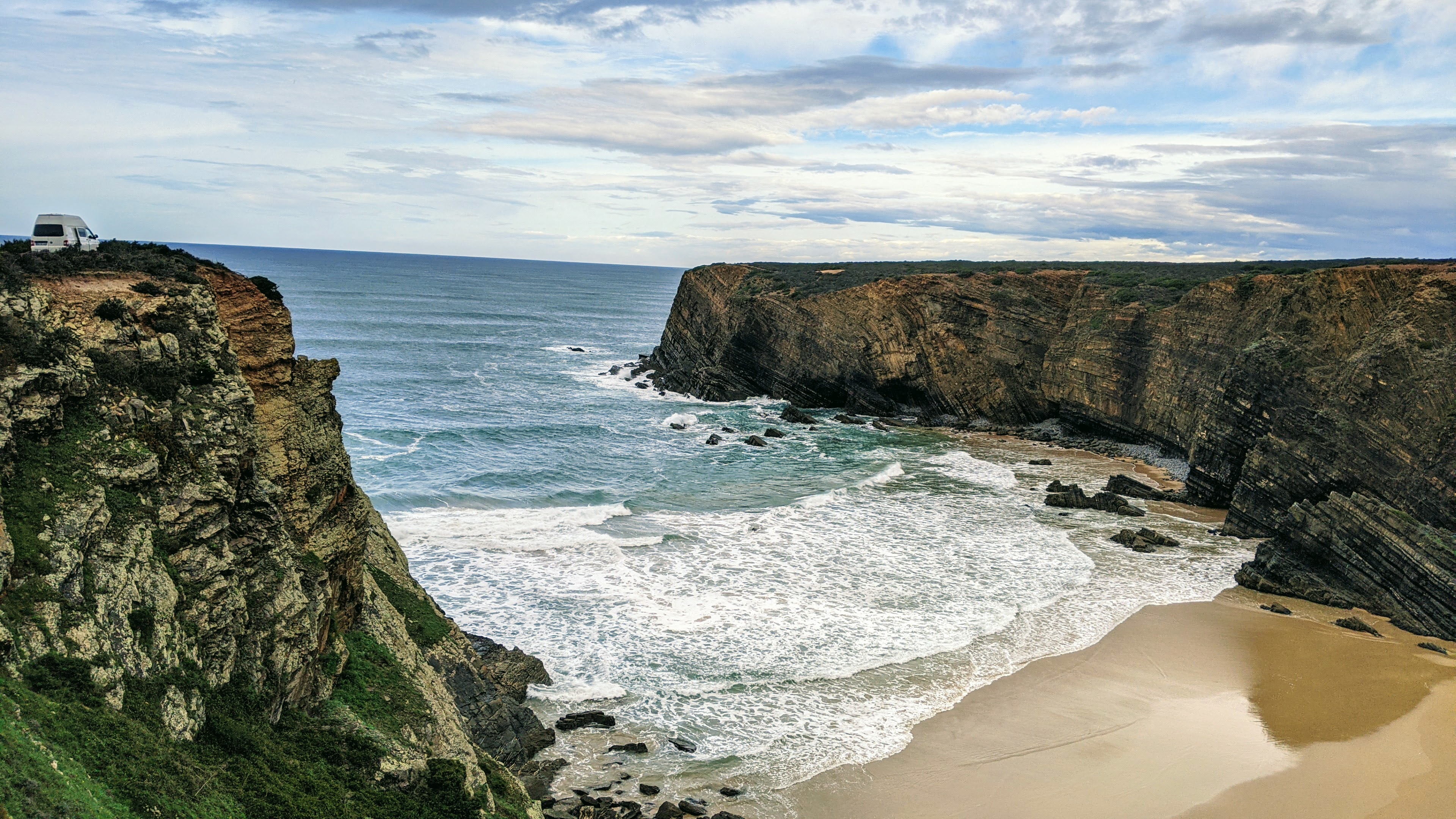 While being at Irina’s place I booked return tickets to America and had only two nights left. But I still had one ambitious plan. After staying several days in eastern Alentejo, in Alandroal, I wanted to visit Alentejo’s western coastal part, the Costa Vicentina. To do so, I needed to drive in one day across two countries: from eastern Spain to western Portugal. It is about 1000 km / 700 miles and I was counting on something like 10 hr. of the pretty much straight drive.