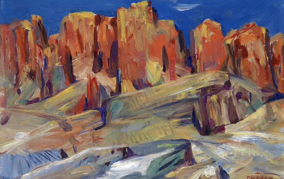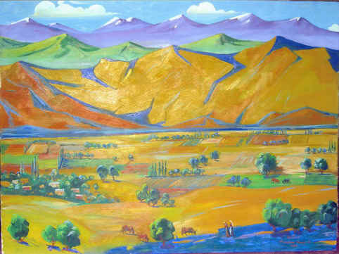 If you would ask someone who grew up in ex-USSR (like me), “What Armenia is known for?”, besides many archeological sites and historical monuments associated with country’s Christian heritage, different people would tell you quite different things. Some would praise traditional Armenian hospitality which no visitor can “escape.” Some would describe Armenians as very intelligent and talented people: indeed, the country produced plenty of well-known musicians, mathematicians and chess-players. Yet, some would think first of all about famous Armenian Cognac (exported abroad as “Armenian Brandy,” but sold internally as “Armenian Cognac”). And anyone who actually visited Armenia would be captivated by the rugged beauty (hence, nick-name the “country of stones”) of this semiarid and mountainous country (average elevation is 5,900 feet/1,800 meters) with lake Sevan being its most precious natural pearl. Here are couple of Armenian landscapes painted by Martiros Saryan