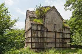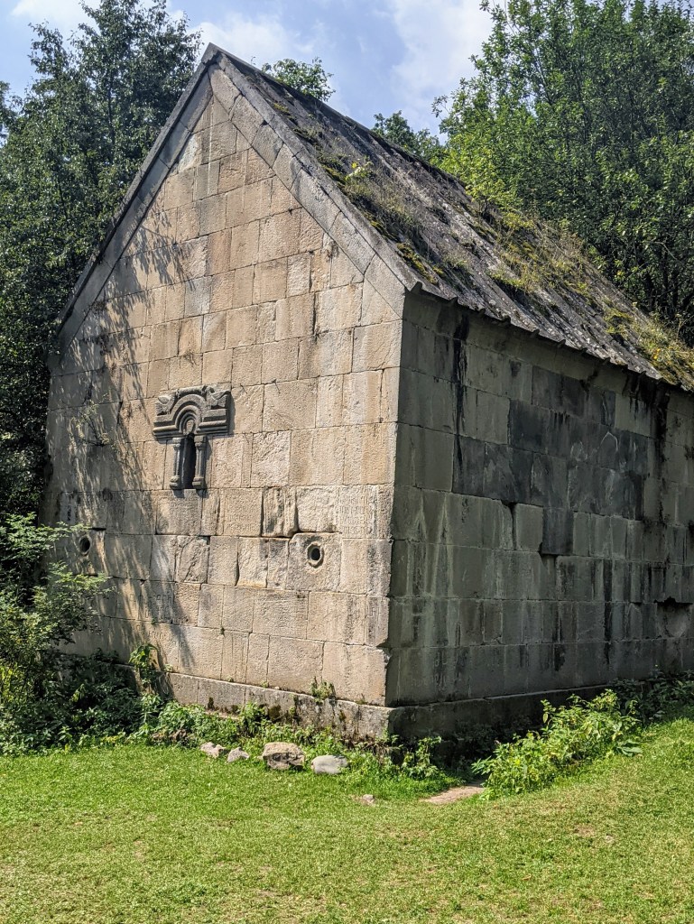 The next day, I decided to combine hiking in the nature with visits to some historical sites. And this can be done easily in Dilijan. Two medieval monasteries, Matosavank and Jukhtakvank, are located in scenic forest settings and yet close to Dilijan. The trailheads to both begin from the same parking area and it takes only about 10 min. by car from Dilijan to come here. I first walked about one hour through the forest to Matosavank, a small 13th century monastery. Nobody was there, when I arrived and it was good time to stretch under the son on the monastery’s roof covered with soft moss.