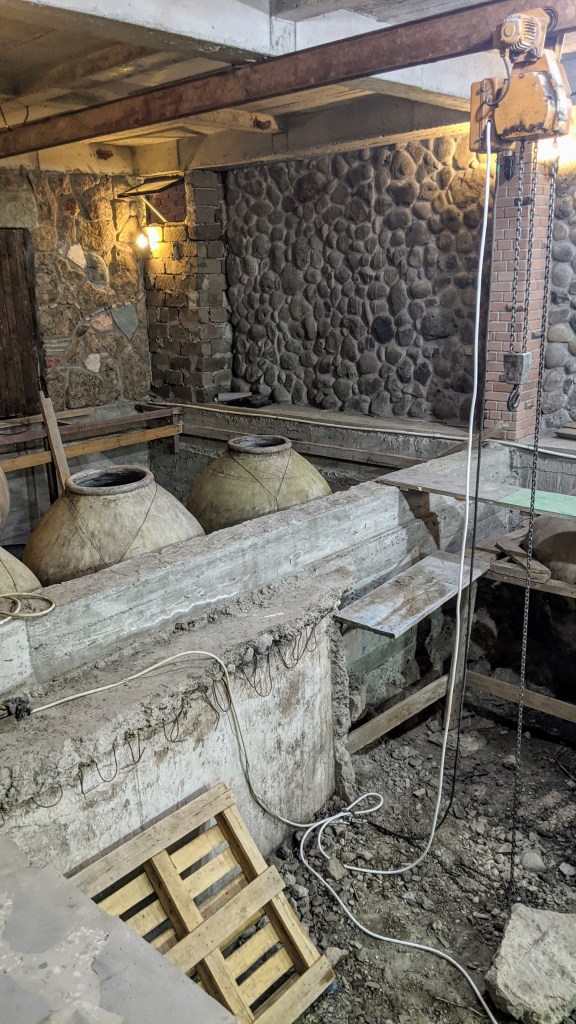 Besides fun architecture and high ratings of their wines on Google maps, I was curious to see an interesting technology used at Voskevaz for wine production – the old “karases” that were made in the 19th century. Karas, a traditional vessel for wine fermentation and aging, was used in Armenia from ancient times.