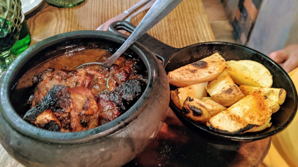 Dilijan has a vibrant restaurant scene. On the first night we went to the place called Kchuch which is known for its dishes prepared in a wood-fired brick oven. “Kchuch” means in Armenain “clay pot,” and many dishes in this restaurant are cooked in clay pots. I had for dinner a pizza with locally harvested wild mushrooms, while my friend Vladimir opted for lamb slowly prepared in a honey sauce and served in a “kchuch.”