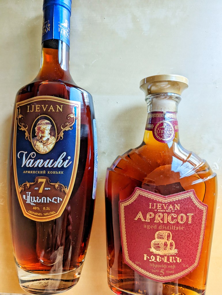 When I grew up in ex-USSR, domestically Armenian Brandy was sold under the name “Armenian Cognac,” but for the export it was marketed as “Armenian Brandy” in order to not violate the rule that only precious beverage produced in French province of Cognac can be labeled “Cognac.” Compared to internationally renown “Ararat” (the factory existed since 1887), “Ijevan” is less recognizable name. In fact, “Ijevan” began its own production only in 1996: prior to that, it shipped unfinished brandies to “Ararat.” But – trust me – today, the quality of “Ijevan” brandies is as good as that of “Ararat.” Plus, you will pay a much lower price for the former. The pride of the factory is brandy “King Abgar” which is aged 40 years, acquiring an incredibly deep flavor. But I was quite happy purchasing a bottle of seven-years-old “Vanuhi” and five-years-old apricot-based brandy. Both – under $10.