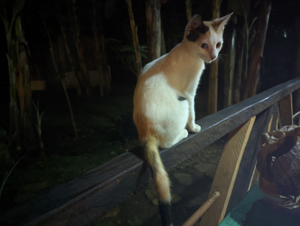 There were no other visitors this night at the resort, and the cute kitten made a great company through my dining al fresco (the restaurant is like a big open gazebo).
