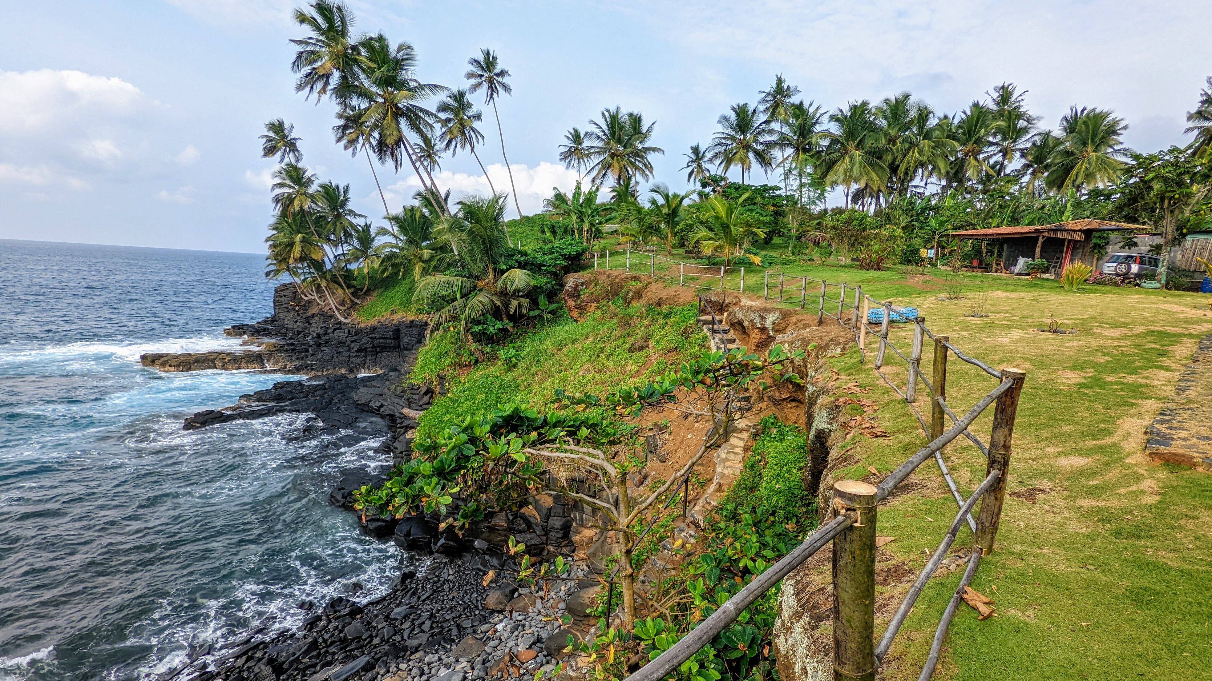 Celia’s place is also right next to one of the most popular tourist attractions on Sao Tome: Boca do Inferno or Hell’s Mouth. Roca do Inferno is a product of coastal erosion by the ocean which resulted in strange rock formations, passages, and sea caves. When the waves hit shoreline, they funnel powerfully through these caves and vertical shafts and produce impressive fountains from the apertures of the shafts and mighty howling sounds. Unfortunately, when I was there, the sea was calm and I did not see the “show.”