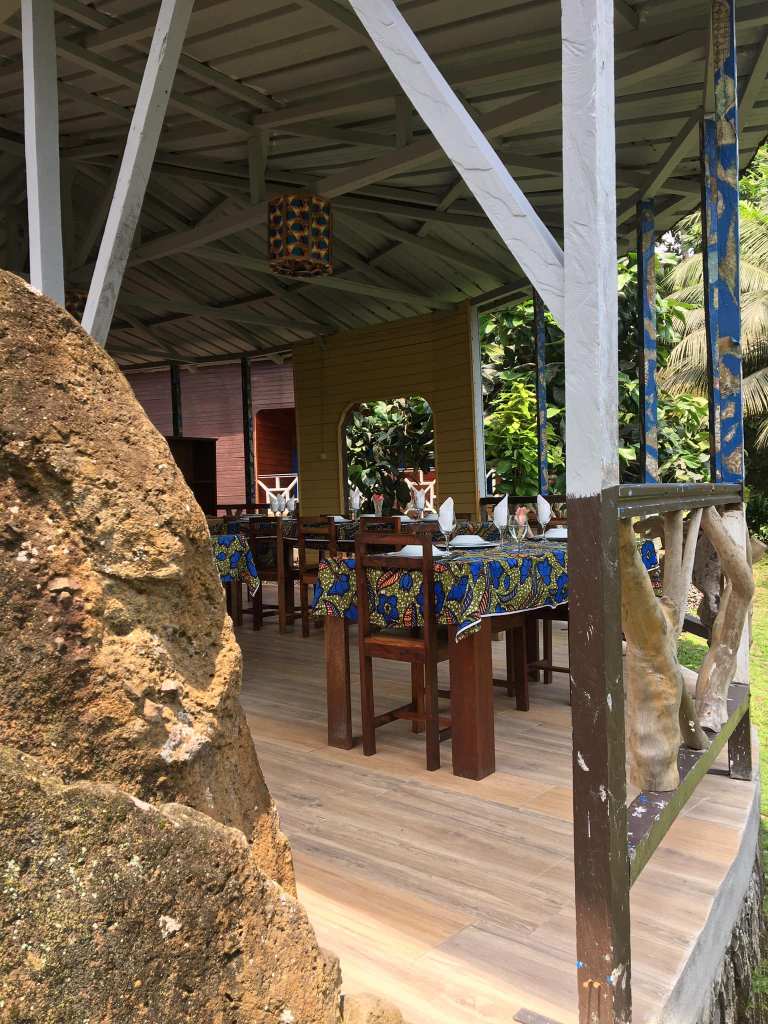 After breakfast, I finally had a chance to meet and chat with the owner of the place: Celia. Celia is an expat from Portugal who has deep love for Sao Tome and is passionate to introduce visitors to its culture, nature and people. A successful businesswoman with international experiences of work and life, she discovered Sao Tome by chance a few years ago. On her first visit, Celia found and loved the sleepy coastal village of Agua Ize (where her resort was later built) and decided to stay there for a while. She “mingled” with locals (which is culturally not always an easy task), felt more and more “at home,” and, eventually bought property and settled there. Then she realized that by developing her property into a small resort, she can not only make some money, but also generate income for a local community by bringing tourists to this picturesque corner of the island and offering locals some jobs.