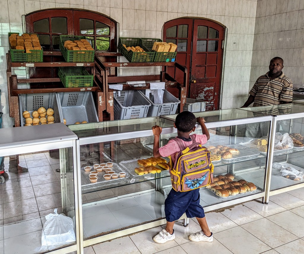 The second shop (and very close to Padaria Moderna) was place called Kua Tela. This is an ultimate destination for any type of handicrafts, souvenirs, and “eatable and drinkable” goods produced in Sao Tome. The prices are a bit higher than at the local producers, but then everything is nicely packed, the staff speaks English, and all what Sao Tome is known for can be found in one place. Physically, it is a rather small shop – just two rooms – but variety of products was impressive, and I spent nearly one hour looking, choosing and buying.