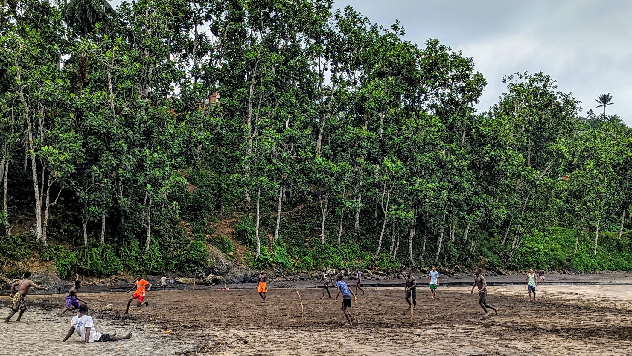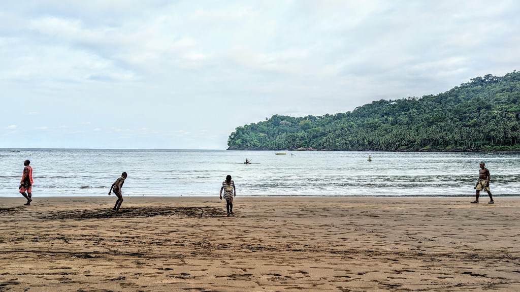 I had a few hours before dinner at Roca de Sao Joao dos Angolares and walked to the nearby village beach. It was surprisingly clean (no empty bottles, beer cans, cigarette butts), and I decided to stay for a while: to take a swim and also observe local social life.