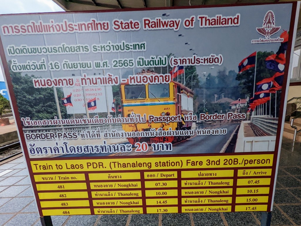 The borders separating Thailand and Laos at Nong Khai are along Mekong river. The so-called “Friendship bridge” connects both sides and serves as a border crossing point. When you arrive to Nong Khai, you will be approached by the numerous motor-rikshaws offering their services to take you across the bridge and even help with immigration procedures. Don’t, because there is a cheaper, more efficient and pleasant way to cross the bridge: to take another, old rickety train.