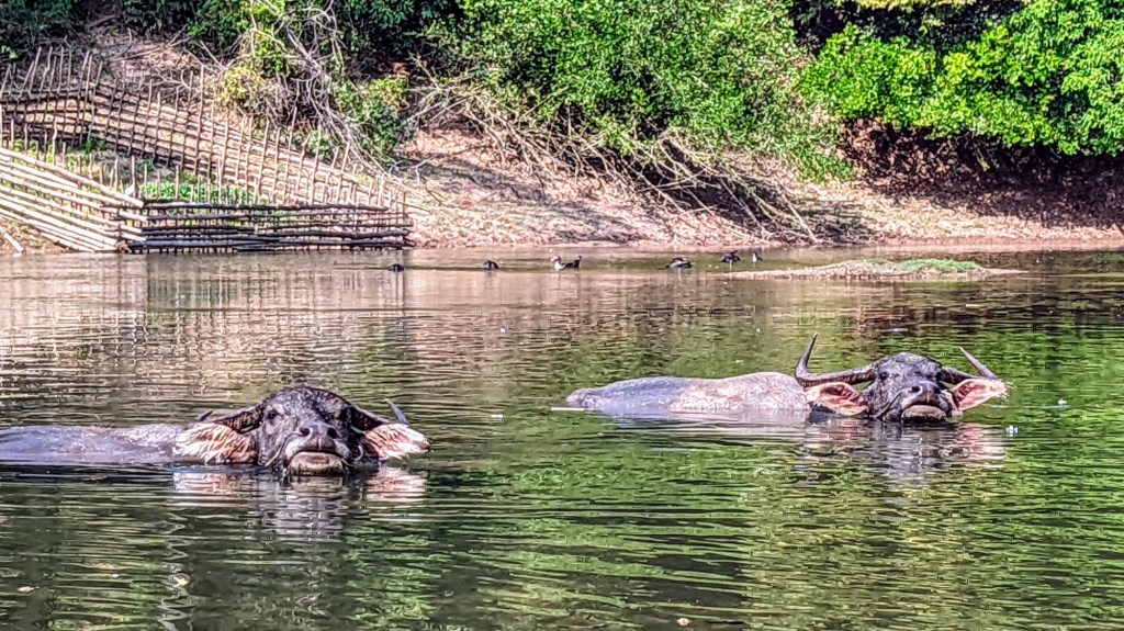 Occasionally I saw huge buffaloes lying in the water and hiding there from too much sun.