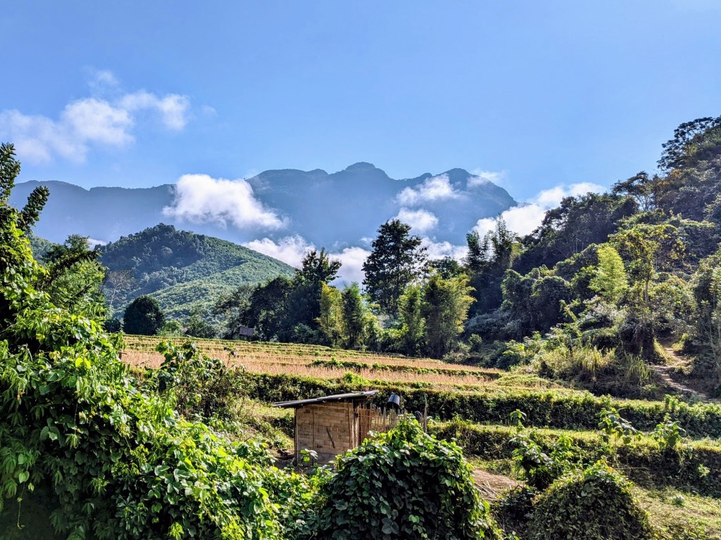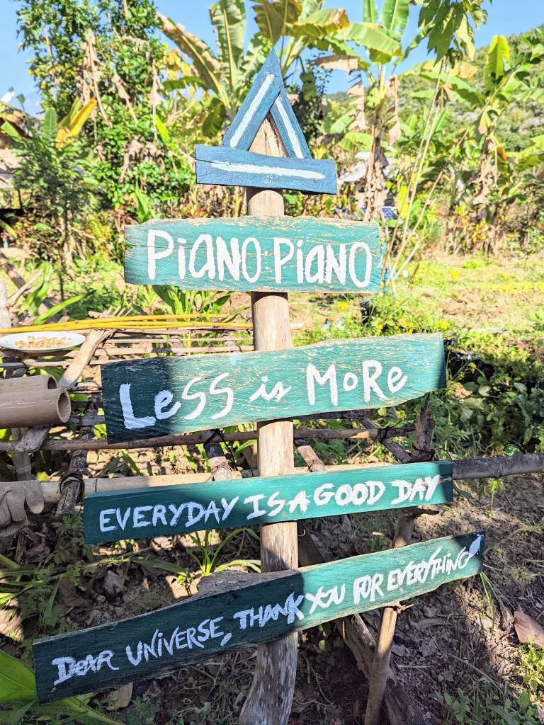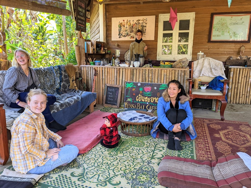 The first destination of a hike was Yensabai Organic Farm, a combination of a family compound, a farm, a coffeeshop, and a homestay. To describe this place: think about commune which attempts to live sustainably and be fully self-sufficient; a commune, where some members live permanently (extended Laotian family of the owner, a local man named Xay) and some members come-and-go (visitors from around the globe).