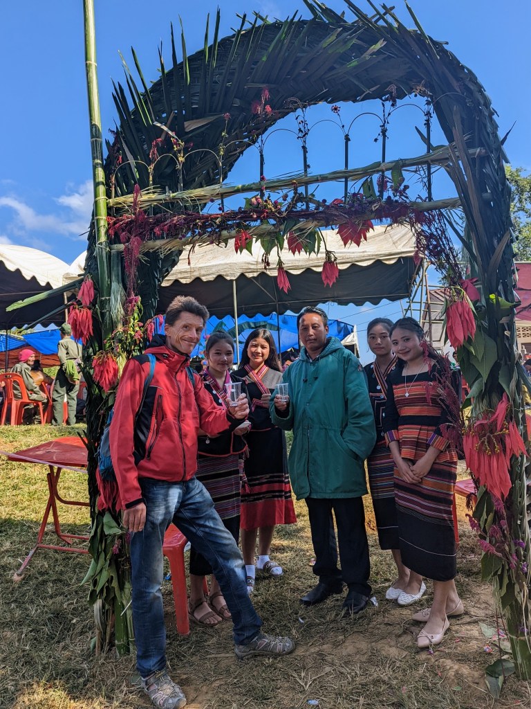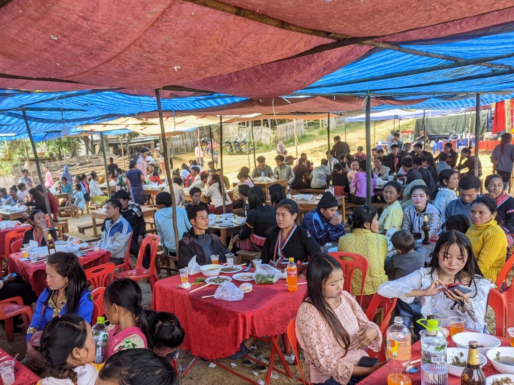 The procedure of joining the festival was walking through the gates, giving some (purely symbolic money), and drinking a small glass of Lao-Lao, a strong Laotian moonshine. I followed, of course, all requirements.