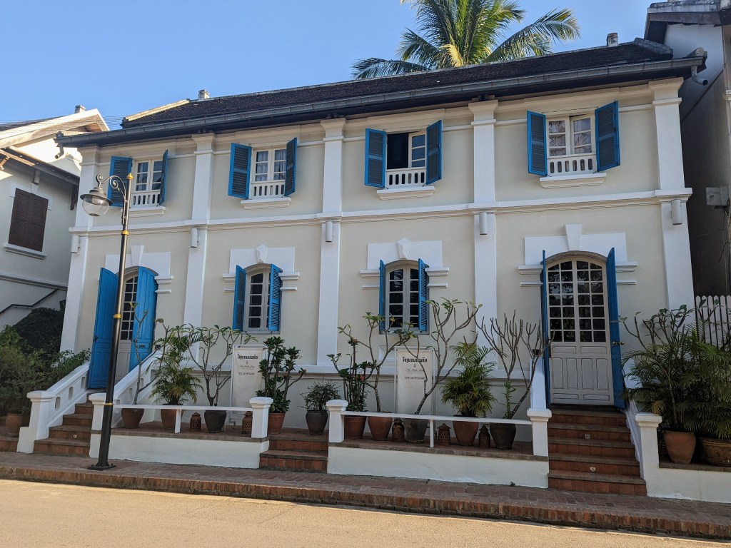 My choice was “Apple 1 Guesthouse.” I found it on Booking.com, liked the reviews (also good reviews on Google maps), and booked their very best room (private bath, air-conditioning, small balcony, refrigerator) for about $35 per night. And it was a good investment. Not only location and accommodations were good, but the owners were genuinely welcoming and helped with all local arrangements: tickets, restaurants, finding a driver to take me out of Luang Prabang, and much more. Big THANKS goes to Jimmy (a Laotian, who grew up in Australia) and his wife for my time in Luang Prabang.