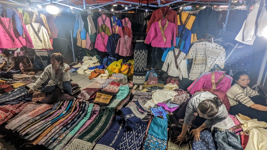 A must visit place in Luang Prabang is its colorful night market. This is definitely best place – in terms of variety of choices and prices – to buy various souvenirs and folk crafts.