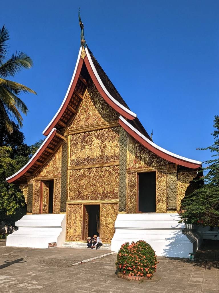 Walking along the Sakkaline Road, the main street of Luang Prabang, you will see a lot of Buddhist temples and monasteries. I visited a few of them and my two favorites – in terms of both architecture and overall atmosphere – were Wat Xiengthong and Wat May Souvannapoumaram.