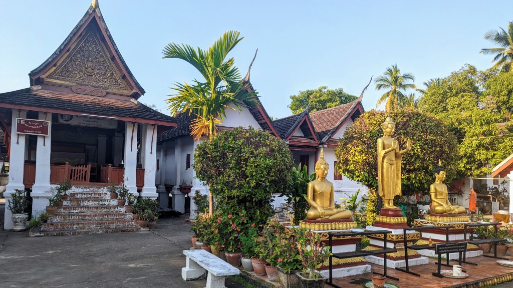 Choosing where to stay in Luang Prabang is important for overall experience of being there. On the one hand, the historical center will give you a sense of being part of the city’s vibrant life. On the other hand, however, the hotels on one of the major streets can be noisy. My recommendation is to book a hotel or guesthouse on Khem Khong street which is also an embankment of the Mekong river. It is only 2 blocks away from the main road bisecting the city, but is much quieter and with many trees creating a relaxed and visually appealing atmosphere.