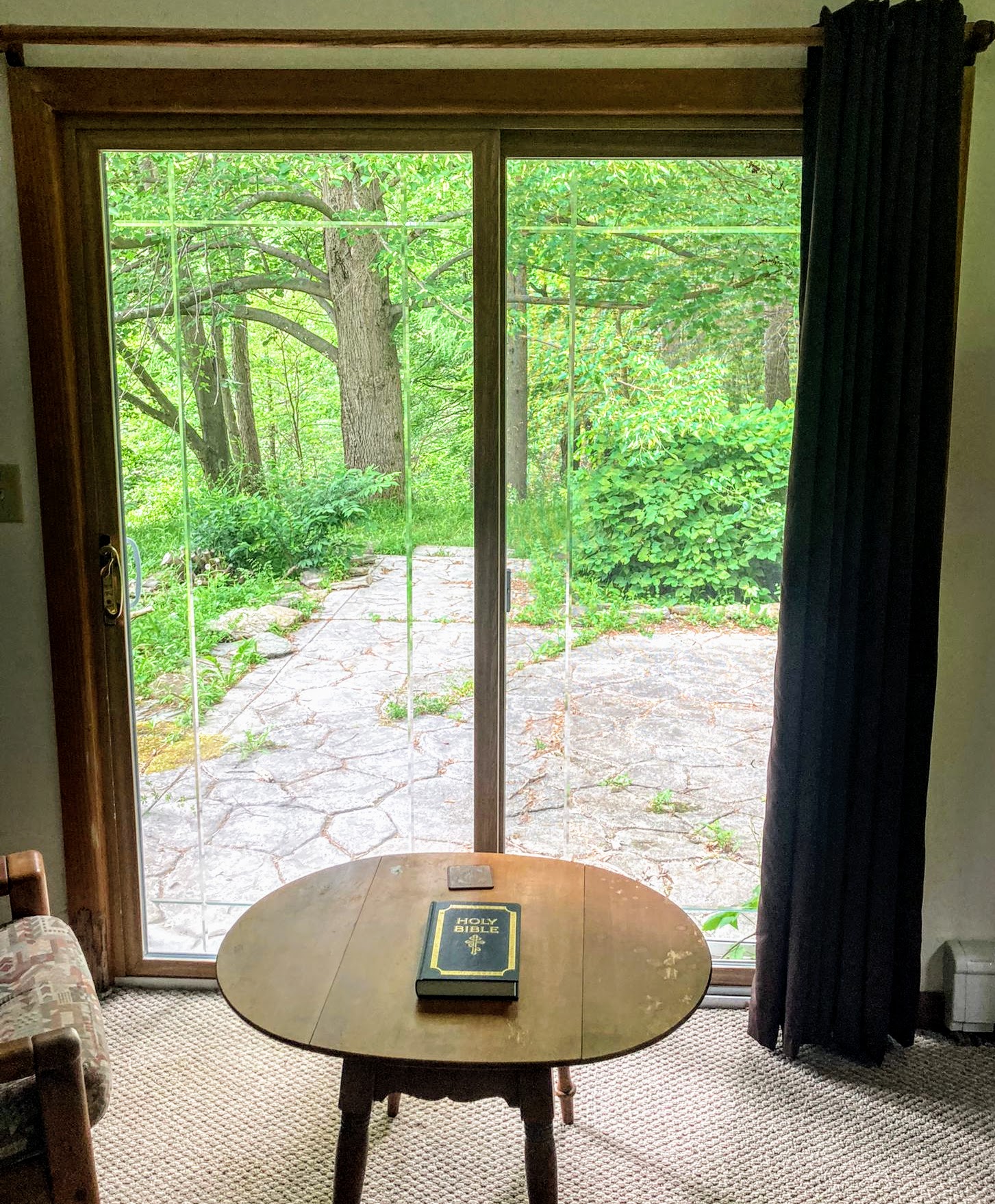 The Emmaus guesthouse is about half-mile away from the main monastery’s complex and is surrounded by woods with many hiking trails.