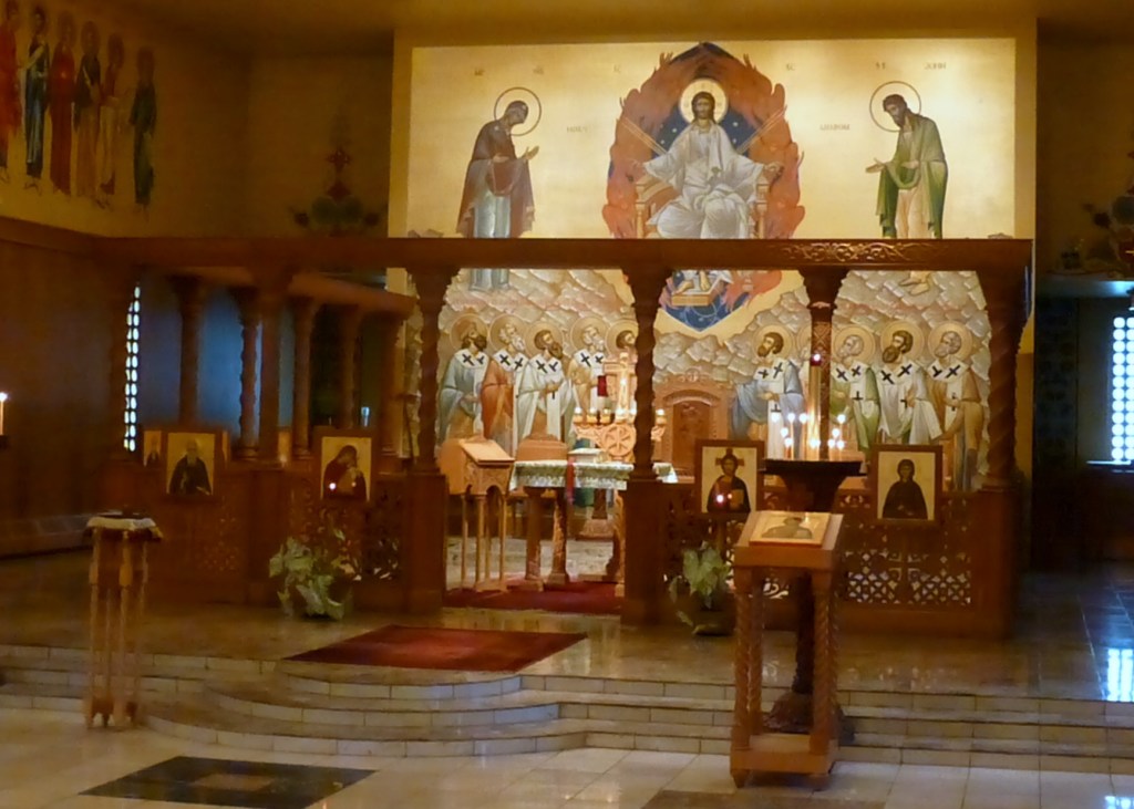 When it is time to venerate icons or to kiss the cross, there is no particular order as to who comes first, whereas more traditional practice would be: clergy, followed by the non-ordained monks, followed by nuns, followed by the laity. The altar is “open” (i.e., the iconostasis does not form a wall) so that everyone can see what happens inside (as was the iconostasis of the ancient Hagia Sophia church in Constantinople).