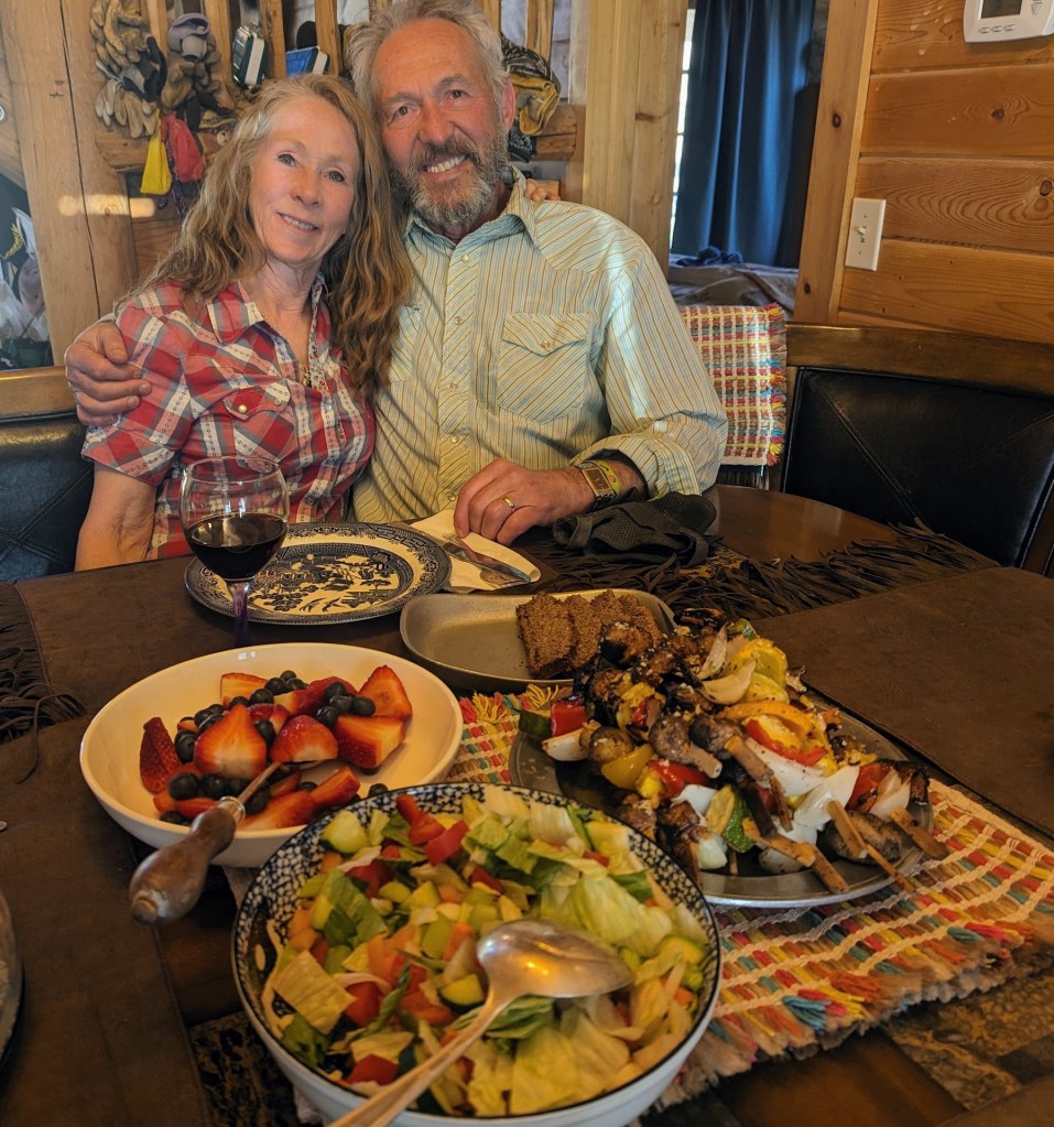The “crown” of the day was delicious dinner prepared by Kim. The original plan to serve exquisite beefalo steaks was amended upon my request (I do not eat meat) and excellent vegetable-and-mushrooms skewers were served.