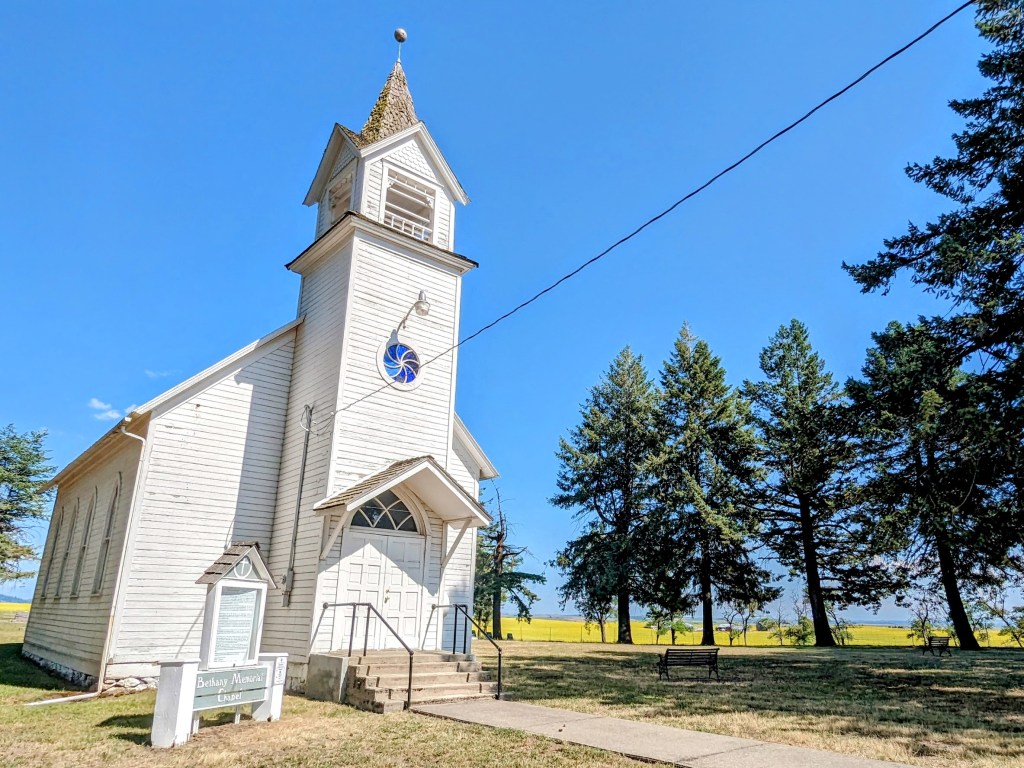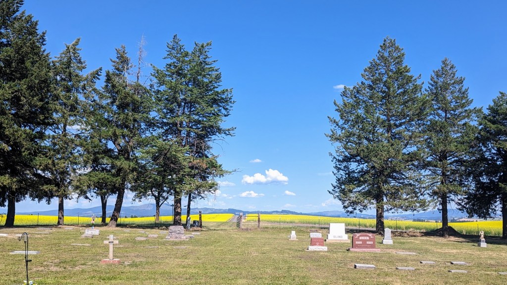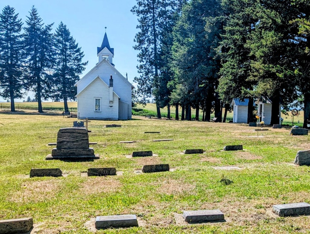 The church was locked, but information stand in front of it offered phone number and the name of a person to call, if we would want to visit inside. Most importantly, the short history of this place was also laid out there. Built in the Carpenter Gothic style, the church was founded in 1908 by 12 families of Norwegian homesteaders who settled here at the beginning of the last century. Its interior was described as finely carved out woodwork. When the active congregation slowly “died out” in 1960s, a group of local community enthusiasts formed the foundation to maintain this fine example of church architecture and historic cemetery.