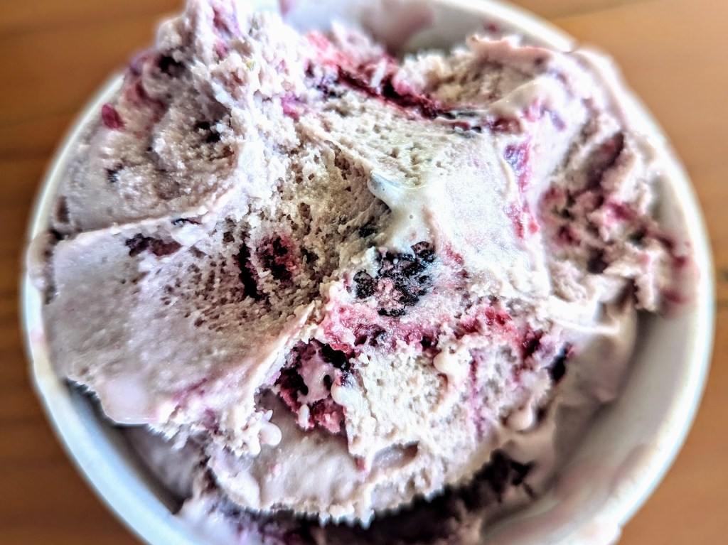I ordered “blackberry and lime” ice-cream and this combination of flavors was excellent.