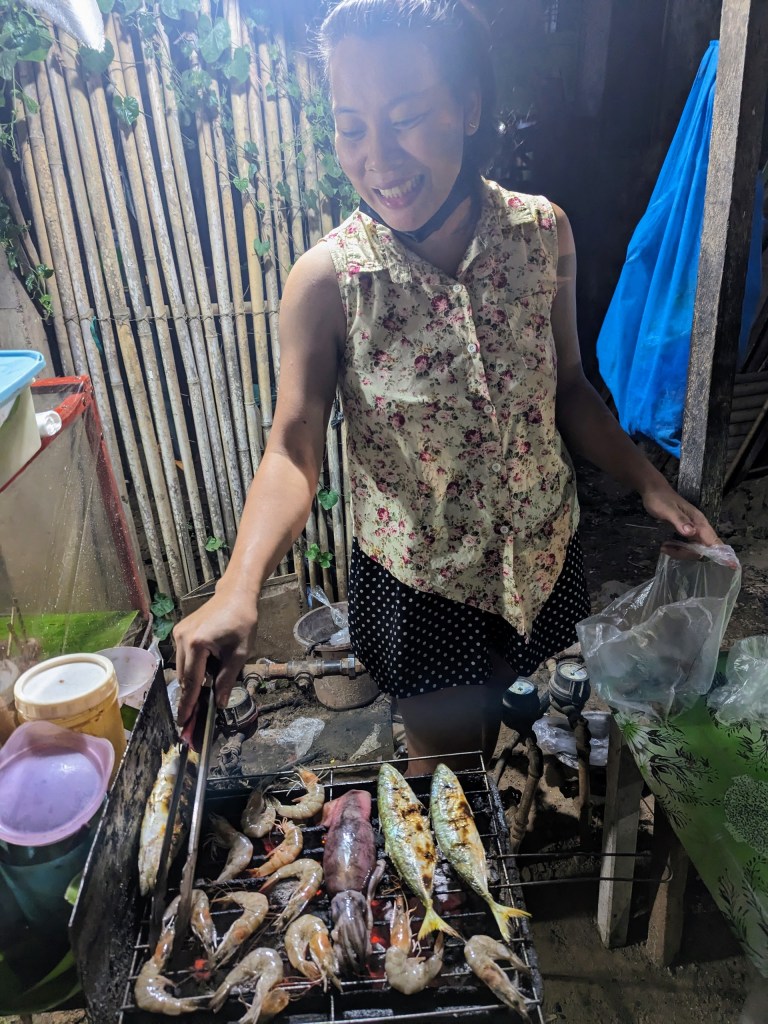 Then I walked to a lady with charcoal grill. She removed all meats and prepared gladly my “catch of the day.”